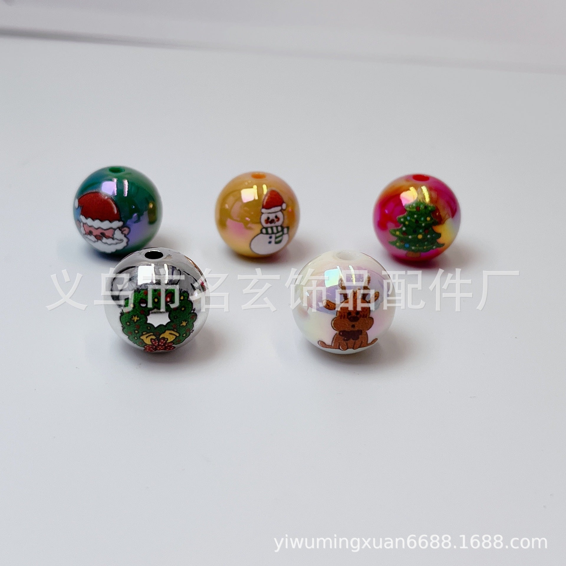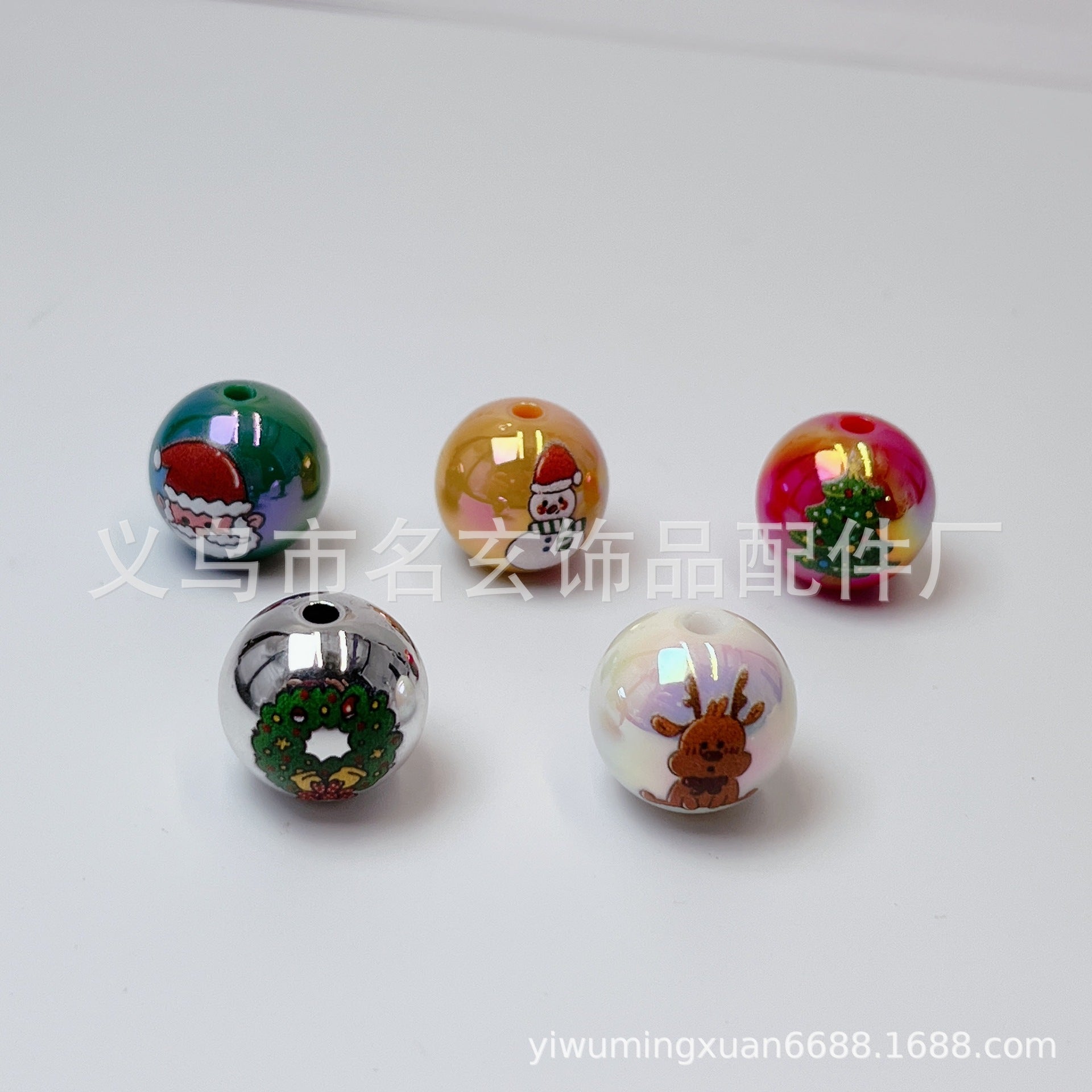 Christmas color printed round bead bead accessories handmade DIY car hanging materials