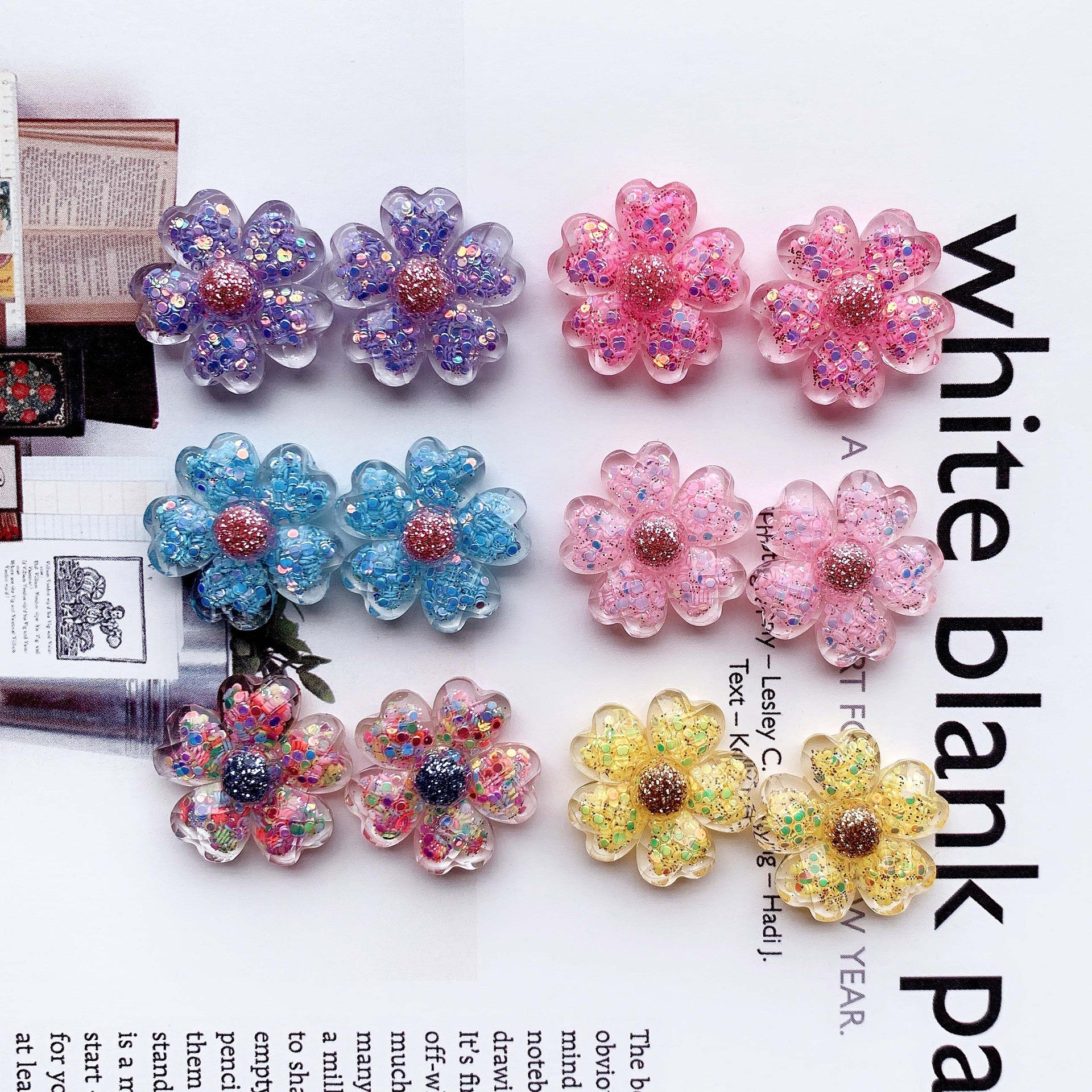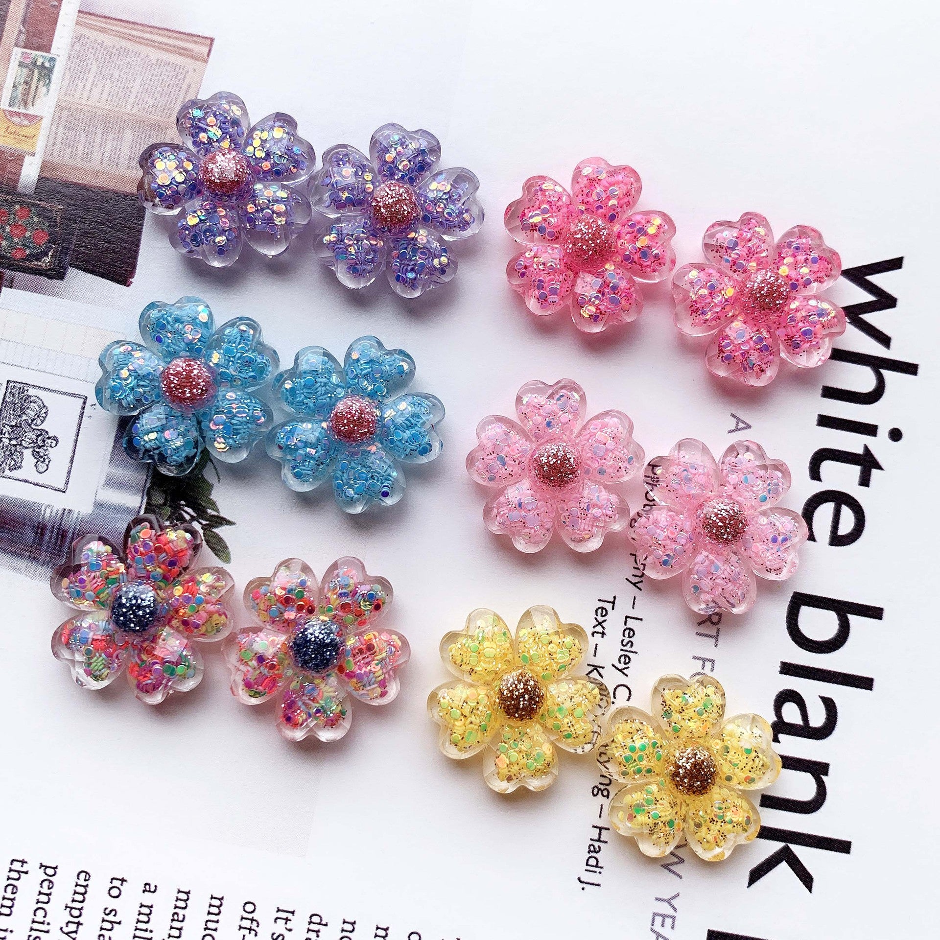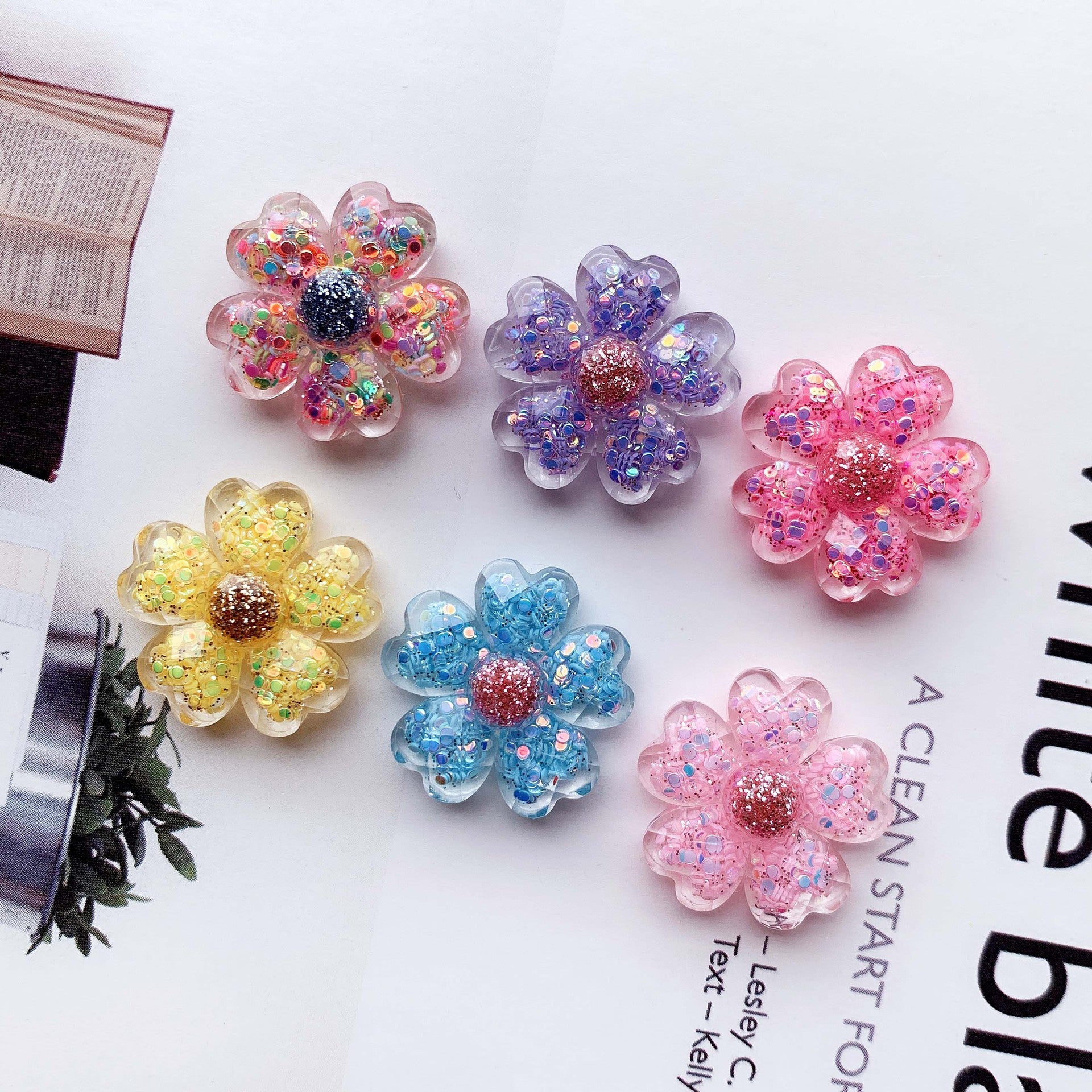 High transparency slice, heart-shaped petal, five petal flower, AB glue resin accessories, DIY jewelry accessories, hair accessories materials